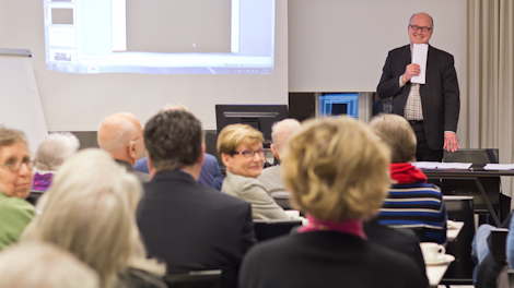 Sibeliuksen juhlavuoden kunniaksi kulttuurihistorian professori Hannu Salmi esitelmöi syyskokouksen yhteydessä Finlandia-teoksen muuttuvista merkityksistä.